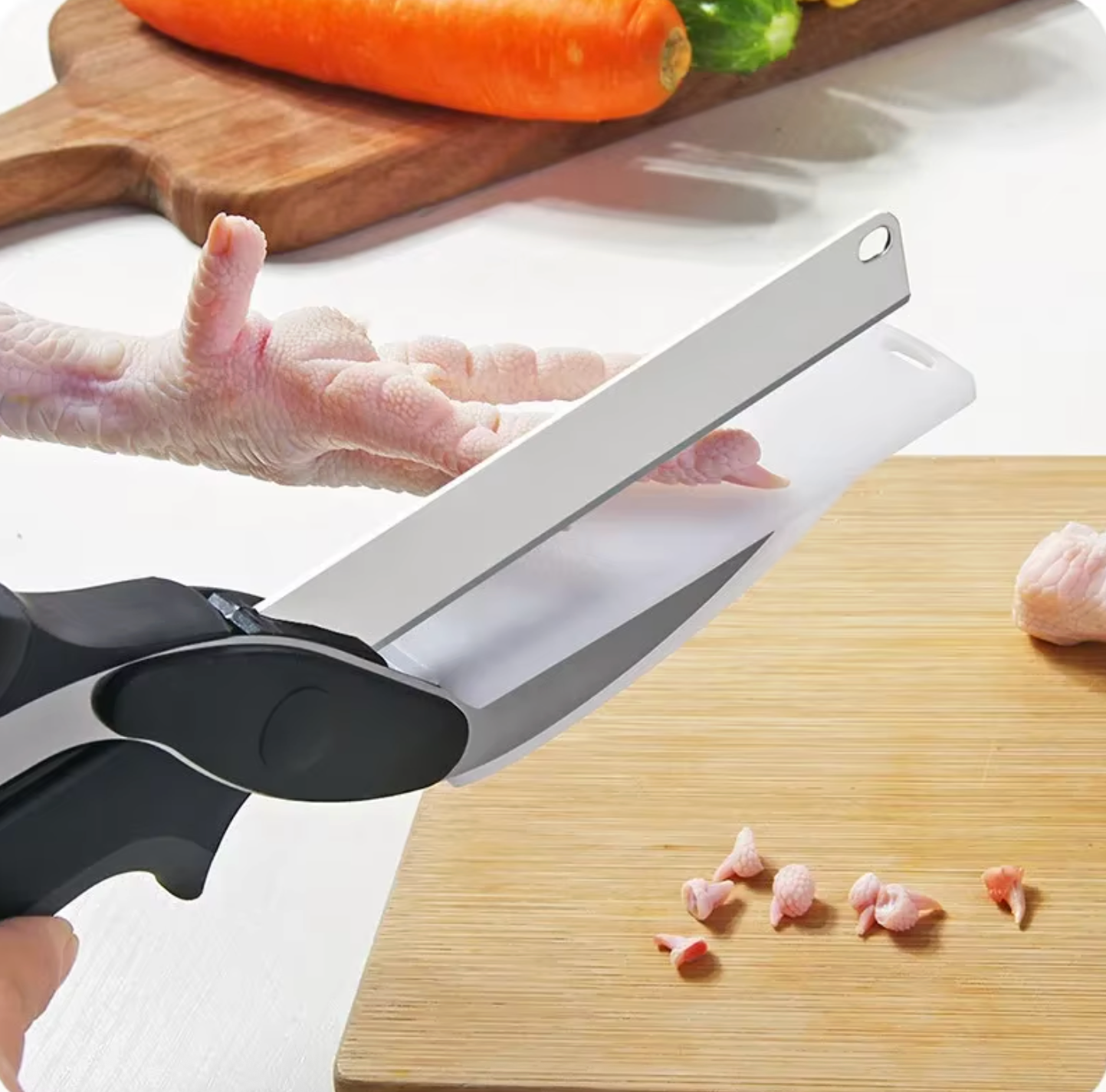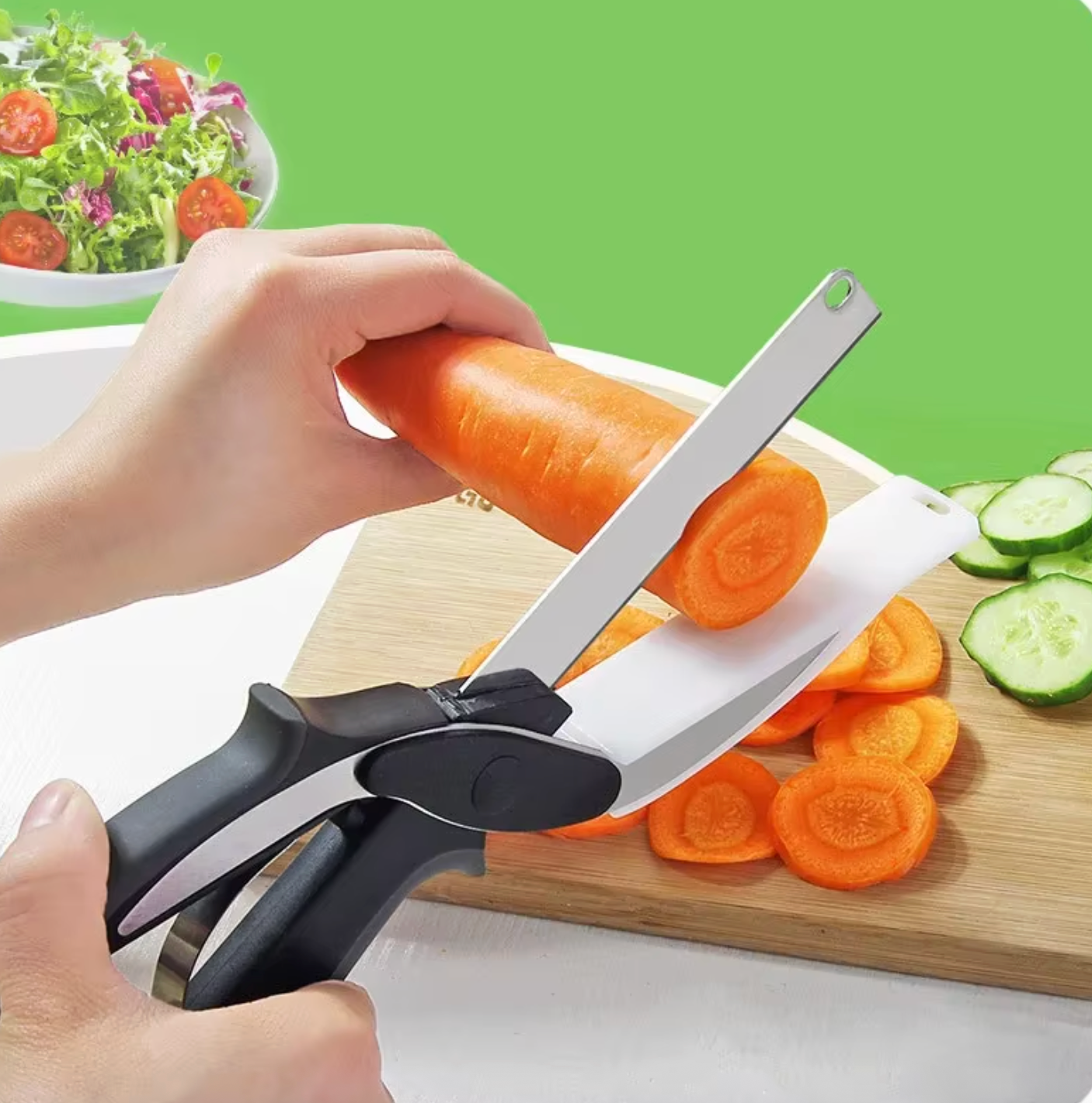 Whether you’re preparing meals for family or entertaining guests, this smart chopping knife and multi-purpose scissors make food prep faster, safer, and more enjoyable.