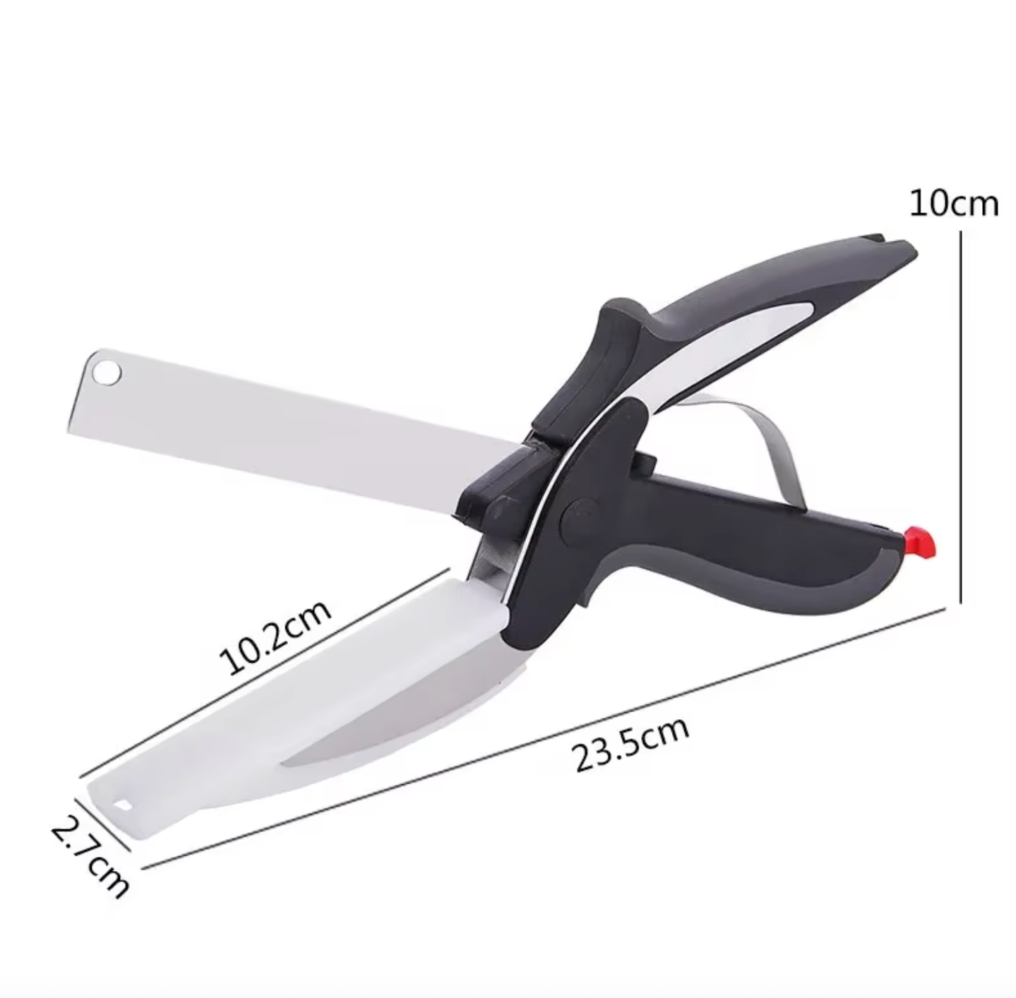 The 2-in-1 chopping knife / multipurpose kitchen scissors is an ideal addition to any kitchen—whether you are a novice cook or a seasoned chef. It fits comfortably on your countertop, and its compact nature makes it easy to store when not in use. Moreover, because it combines two essential tools into one, it minimizes clutter, meaning you can keep your kitchen organized and functional. This tool is designed for everyone who loves to cook, effortlessly enhancing your culinary experience.